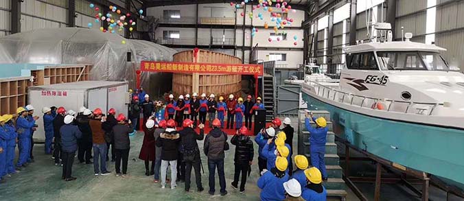 2019年1月8號昊運船艇24米游釣艇開工儀式,昊運船艇邀請青島船級社領(lǐng)導(dǎo)、用戶及設(shè)備供應(yīng)商共同剪彩。